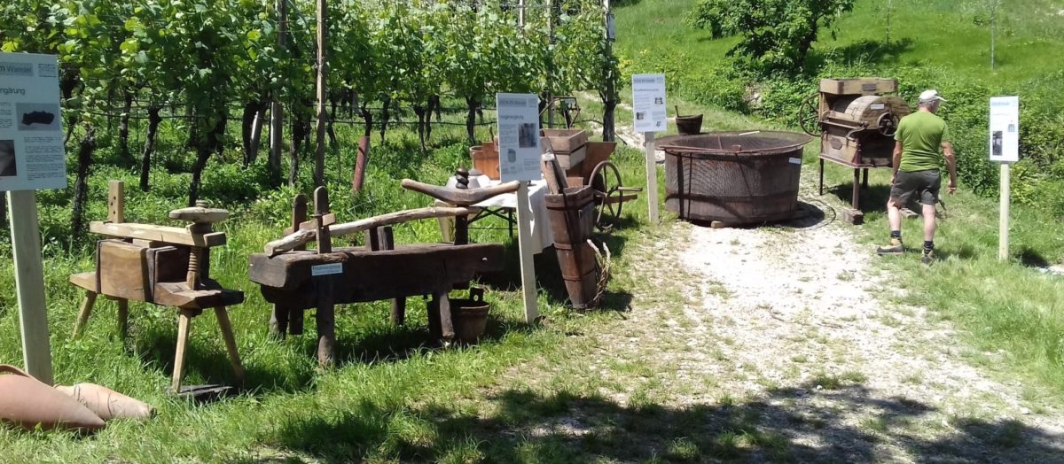 Das Museum Zeitreise Mensch präsentiert entlang des Weinlehrpfades die kleine Sonderschau „Wein im Wandel“ und zeigt dabei die Entwicklung der Weinbereitung von der Römerzeit bis heute.