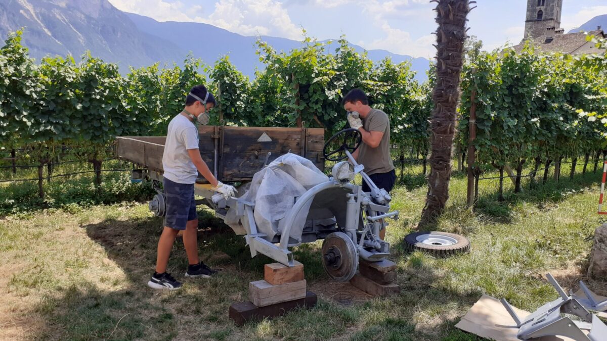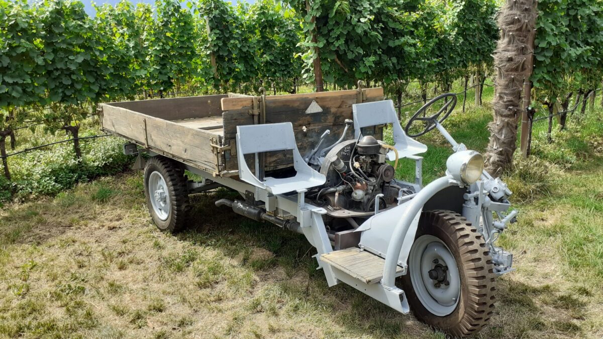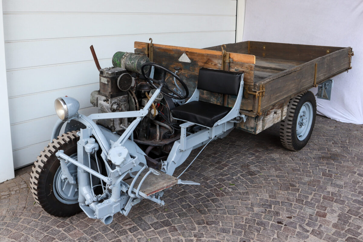 Die Dreiräder wurden als Transportfahrzeuge und auch als Vorläufer der Traktoren in den Obst- und Weinbaubetrieben Südtirols verwendet.